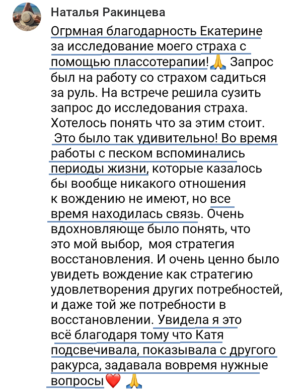 Мои потребности быть услышанной, эмоциональная безопасность, связь, сотрудничество, доверие, принятие, обратная связь наполнялись❤️🙏